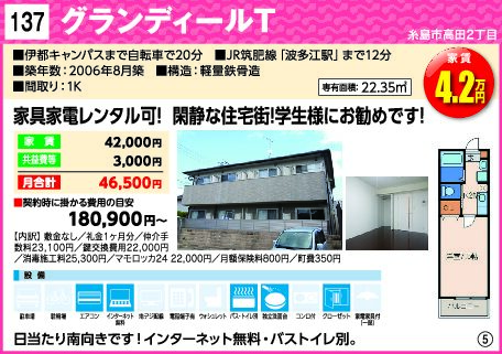 グランディールT 2025 10/31 本物件の募集状況はお問い合わせください。 ※実際と異なる場合は、現況を優先いたします。 お問合せ・お申込み お問合せ お問い合わせいただきましたら、九大生協よりご連絡致します。 その他