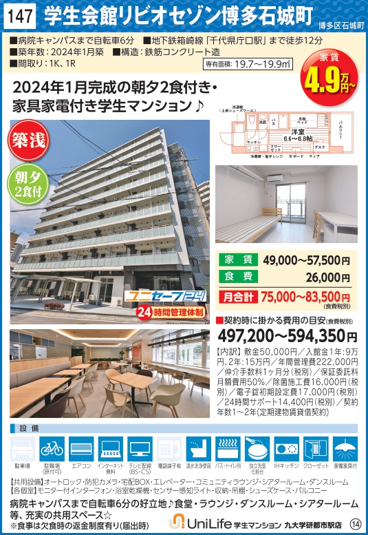 学生会館リビオセゾン博多石城町 2025 11/01 本物件の募集状況はお問い合わせください。 ※実際と異なる場合は、現況を優先いたします。 お問合せ お問合せ お問い合わせいただきましたら、九大生協よりご連絡致します。 2025_16 その他