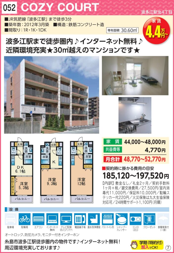 | 44,000~48,000円 | 30.60 ㎡ | 2012年3月 |